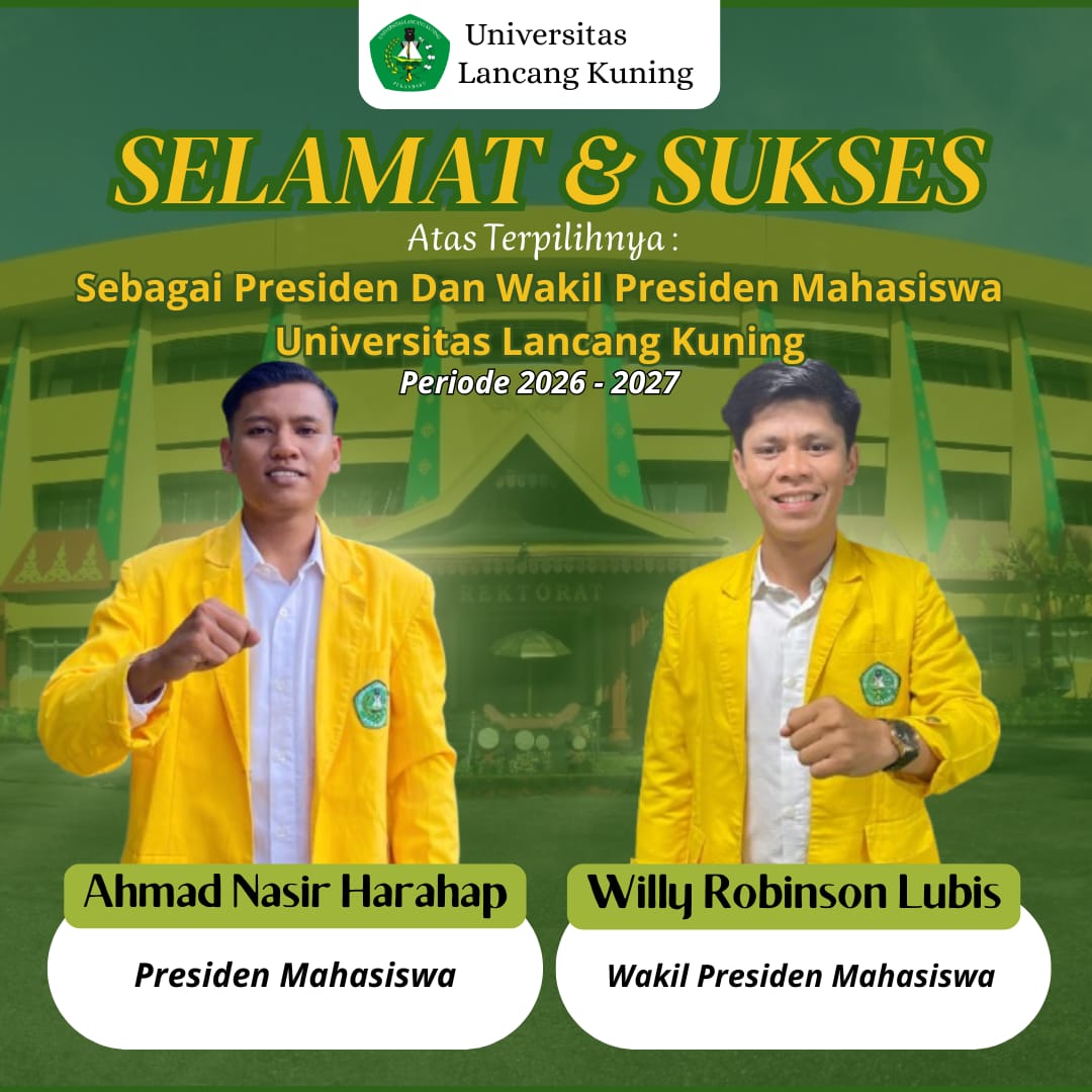 RI satu, come.|PEKANBARU –  Ahmad Nasir Harahap dan Willy Robinson Lubis resmi terpilih sebagai Presiden dan Wakil Presiden Mahasiswa Universitas Lancang Kuning periode 2026–2027. Keduanya dinyatakan menang secara sah berdasarkan hasil Pemilihan Umum Mahasiswa (Pemilwa) yang digelar sesuai aturan dan tata tertib yang berlaku di lingkungan kampus.