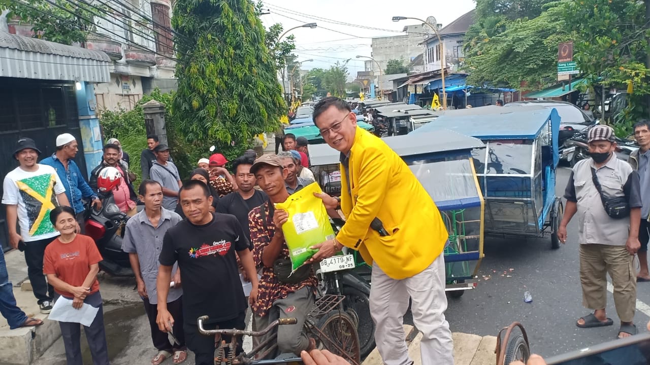SIBOLGA (RISATU.COM) – Dewan Pimpinan Daerah (DPD) Partai Golongan Karya (Golkar) Kota Sibolga mengadakan aksi bakti sosial dengan membagikan 5 kg beras kepada ratusan pengemudi becak. Kegiatan ini diselenggarakan di tengah meningkatnya harga bahan pokok di Kota Sibolga.