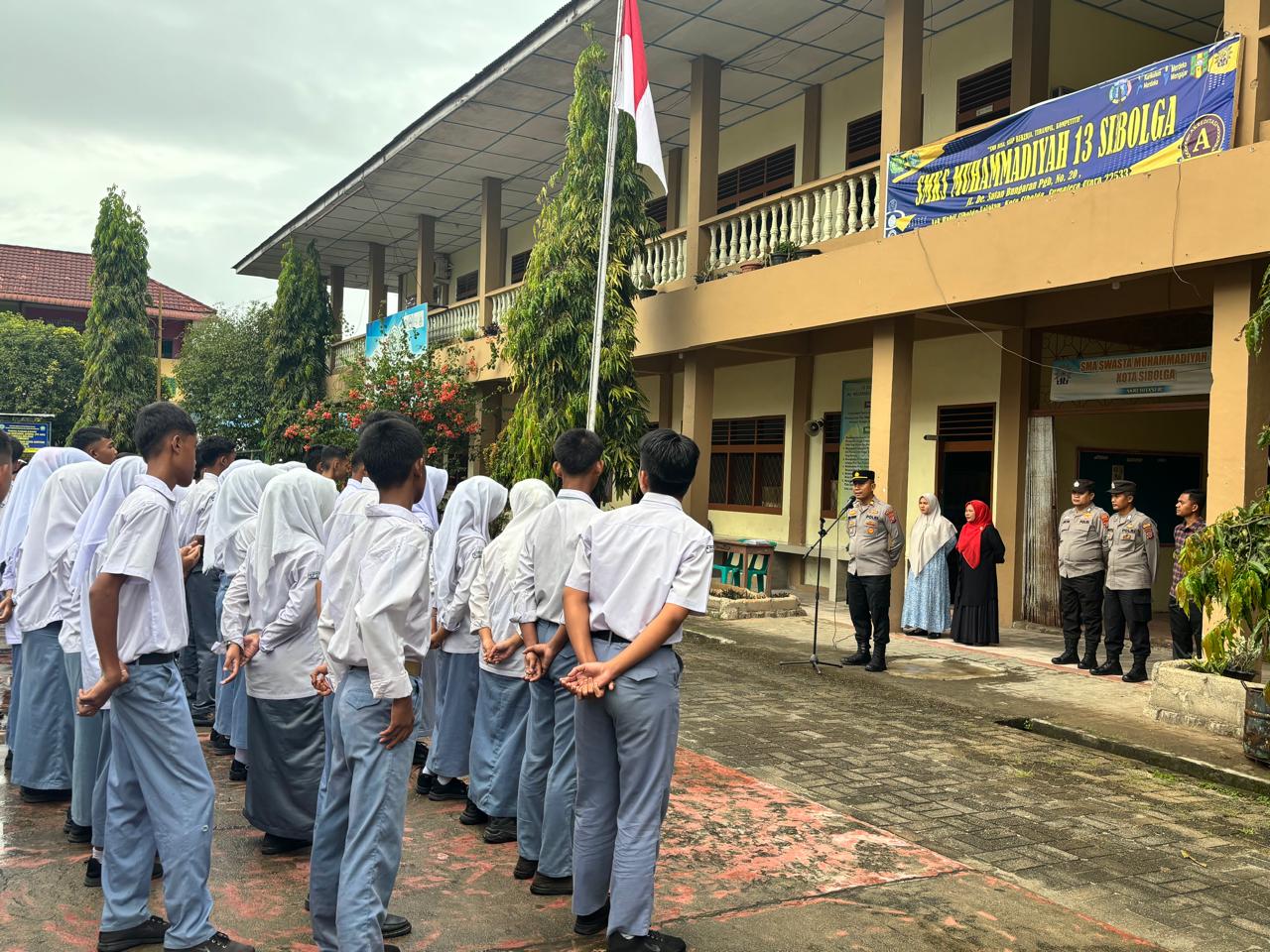 SIBOLGA | RISATU.COM — Dalam rangka menanamkan kesadaran hukum dan meningkatkan kedisiplinan di kalangan pelajar, Polda Sumut melalui Polsek Sibolga Selatan melaksanakan kegiatan “Police Goes to School” di SMA Swasta Muhammadiyah Sibolga yang berlokasi di Jalan Suran Bungaran Panggabean / Jalan Dame, Kelurahan Habil, Kecamatan Sibolga Selatan, Kota Sibolga.