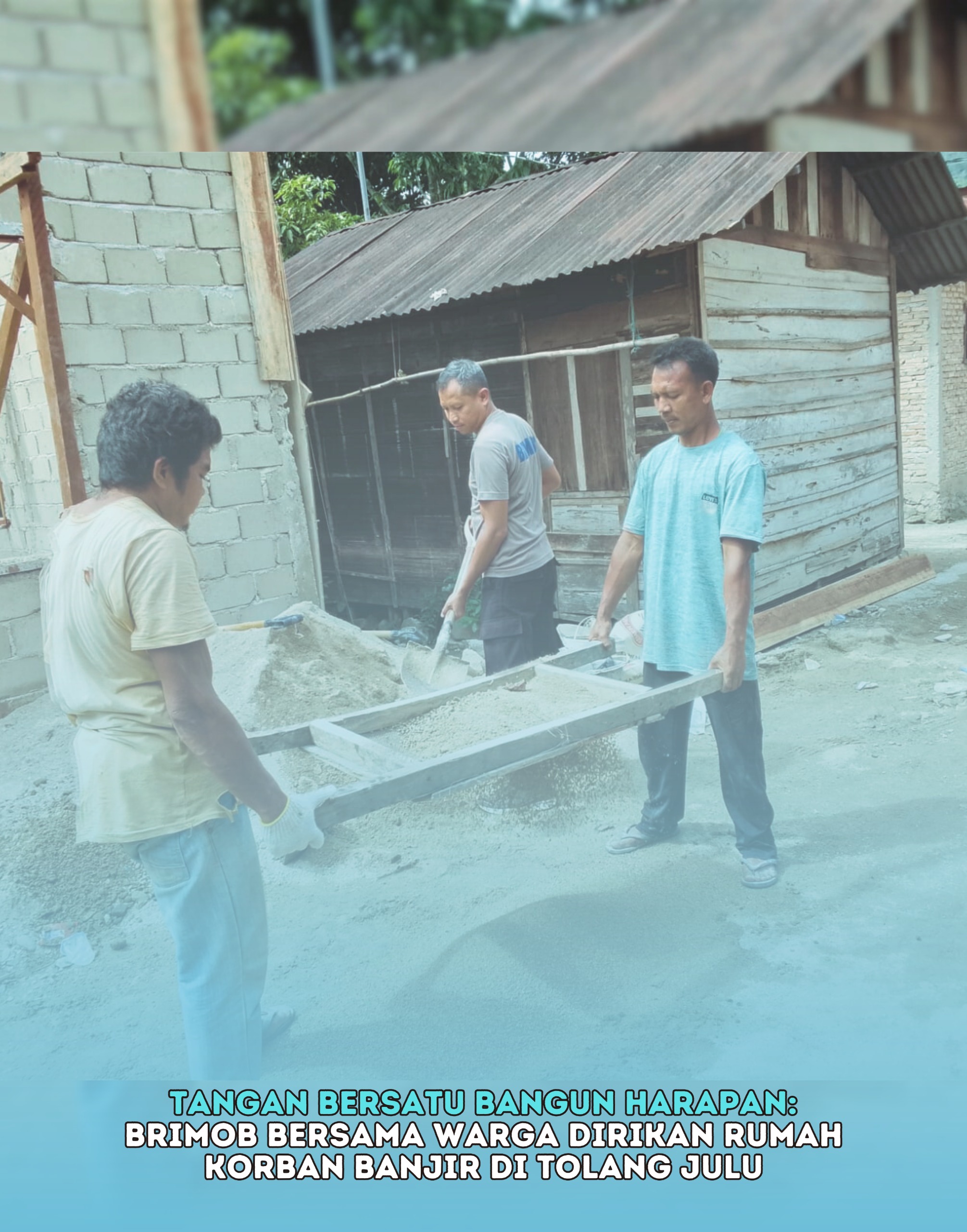 Di bawah cuaca cerah yang mendukung kegiatan, personel Brimob Batalyon C bersama masyarakat setempat bahu-membahu melanjutkan proses pembangunan rumah bagi korban banjir. Kegiatan ini dipimpin oleh Danton I Kompi 1 Batalyon C, Iptu Roy Sandri Pohan, S.H., sebagai bagian dari komitmen Polri dalam mendukung pemulihan kehidupan warga pascabencana.