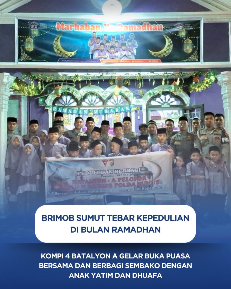 Kegiatan ini dipimpin langsung oleh Komandan Kompi 4 Batalyon A Sat Brimob Polda Sumut, AKP Ridwan, yang turut berbaur bersama anak-anak dalam suasana kebersamaan yang sederhana namun penuh makna. Selain melaksanakan buka puasa bersama, personel Brimob juga menyerahkan bantuan berupa paket sembako serta tali asih sebagai bentuk perhatian dan kepedulian terhadap anak-anak yatim dan dhuafa yang berada di asrama tersebut.