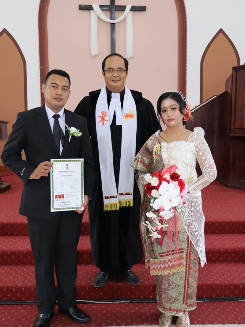 Turut hadir pula Pendeta Jemaat Resort 60 BNKP, Pdt. Juliaman Harefa, M.Div., Th.M., yang menyaksikan langsung rangkaian acara serta memberikan doa dan berkat bagi kedua mempelai agar kehidupan rumah tangga mereka senantiasa diberkati.