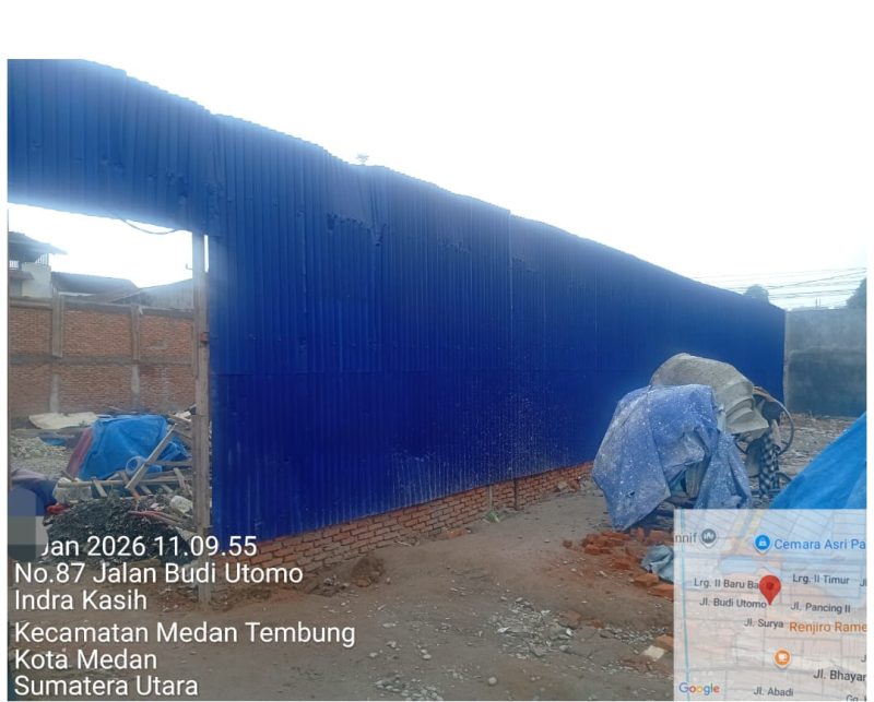 Salah satu titik yang menjadi sorotan adalah proyek pembangunan di Jalan Budi Utomo, Kelurahan Indra Kasih, Kecamatan Medan Tembung. Berdasarkan pantauan di lapangan, tidak terlihat adanya plang PBG yang seharusnya dipasang di lokasi proyek sebagai bukti legalitas.