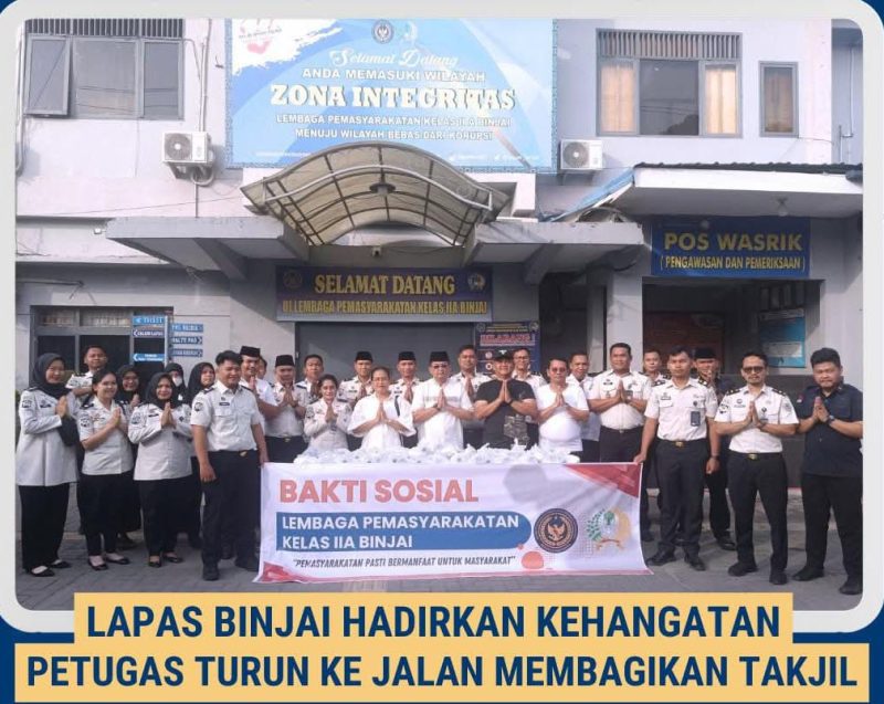 BINJAI | RISATU.COM – Pada Kamis sore (05/03/2026), jajaran Lapas Binjai menggelar kegiatan berbagi takjil kepada masyarakat yang melintas di depan lapas sebagai bentuk kepedulian dan kebersamaan di bulan penuh berkah.