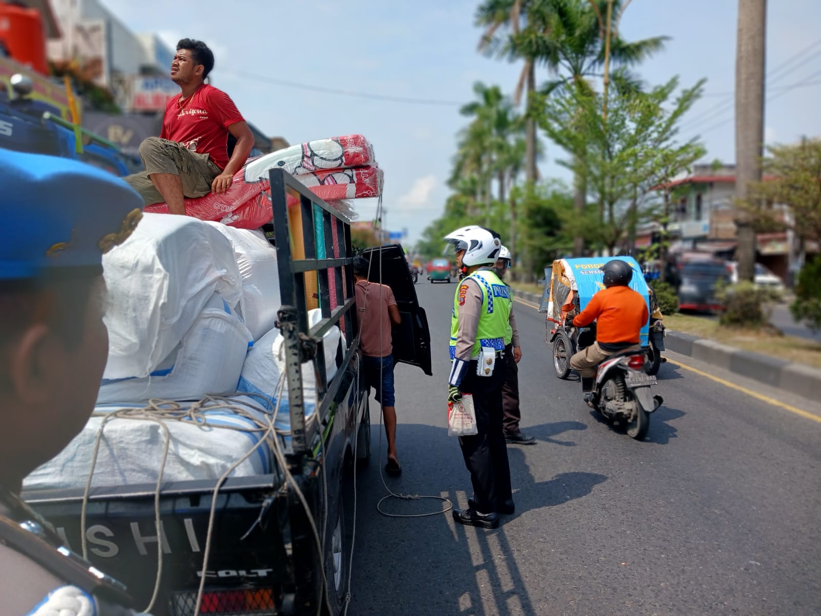 Polda Sumut juga memperkuat kehadiran di lapangan dengan melakukan kegiatan ramp check terhadap pengemudi truk dan bus, pengecekan kelengkapan kendaraan dan identitas siswa, mahasiswa, maupun pekerja.