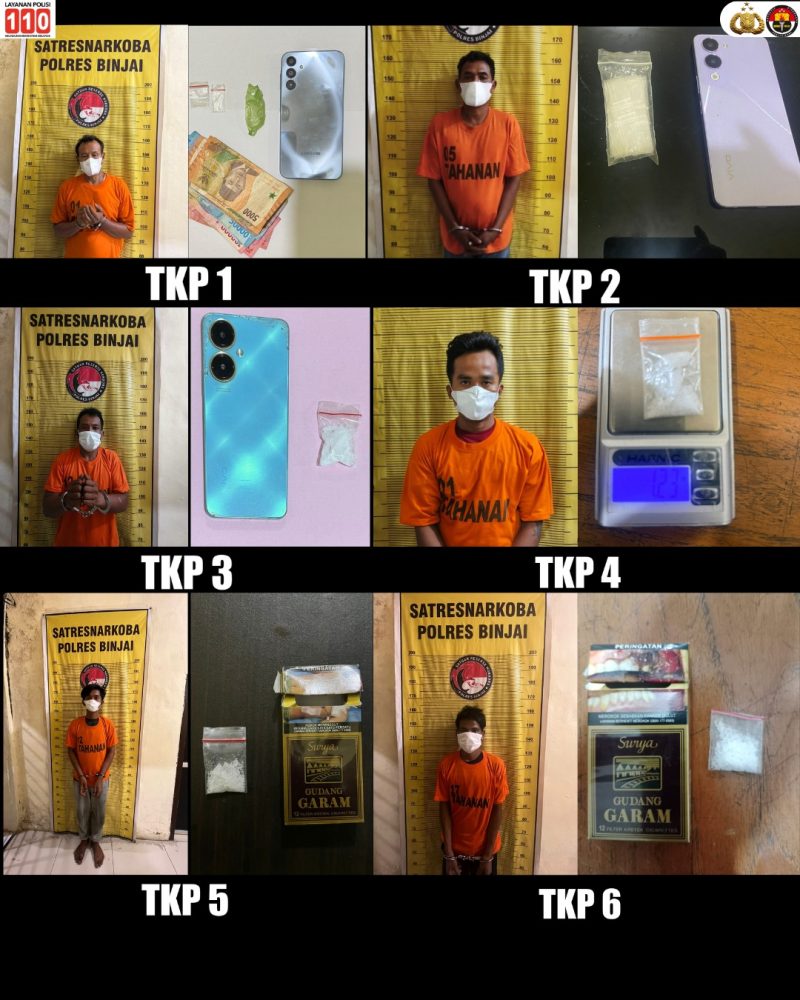 Keenam tersangka ditangkap di enam titik berbeda yang tersebar di wilayah Binjai Barat dan Binjai Timur, antara lain: