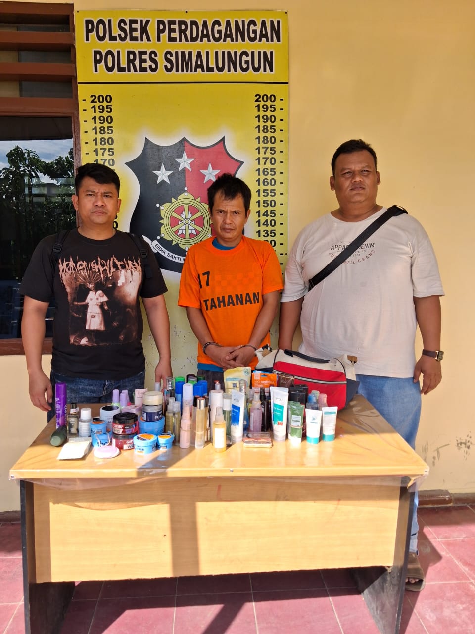 SIMALUNGUN | RISATU.COM – Unit Reskrim Polsek Perdagangan Polres Simalungun berhasil mengamankan salah satu pelaku pencurian toko kosmetik dengan kerugian mencapai Rp 84.153.000. Tersangka Franky Erikson Manalu (37) ditangkap pada Jumat dinihari, 12 September 2025, sekitar pukul 00.30 WIB di depan rumahnya di Jalan Rajamin Purba, Kelurahan Perdagangan III, Kecamatan Bandar, Kabupaten Simalungun.