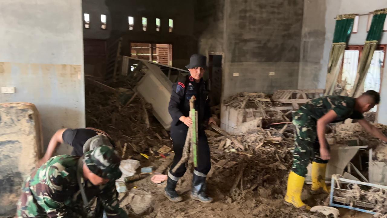 “Kami sangat berterimakasih kepada pihak TNI Polri yang telah membantu membersihkan rumah kami yang terdampak bencana. Semoga TNI Polri makin jaya kedepannya,” ucapnya.