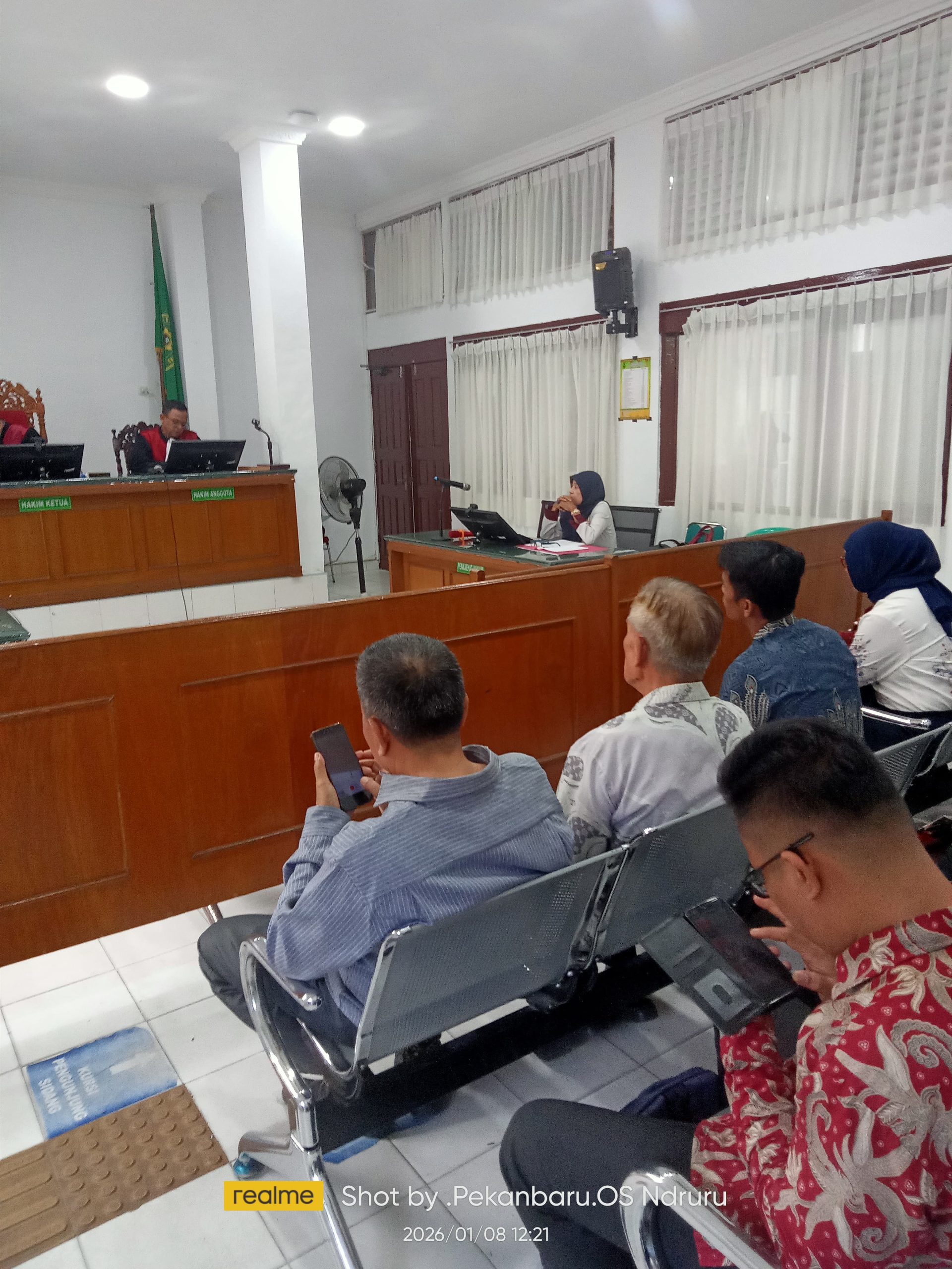 Sidang dilaksanakan pada Kamis, 8 Januari 2026, sekitar pukul 12.10 WIB, bertempat di Ruang Sidang Kusuma Admadja, Pengadilan Negeri Pekanbaru, Jalan Teratai, Kota Pekanbaru. Sidang dipimpin oleh hakim ketua bersama dua hakim anggota serta dihadiri oleh panitera pengganti.